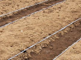 (1)畝の表面をよく均し、畝と直角に、深さ1~2cmの蒔き溝を15~20cm間隔でつけます。