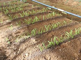 (2)条間が15~20cmの品種は、条を畝と直角にする、雁木(がんぎ)まきにしています。
