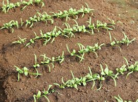 (1)本葉が4~5枚のころに、5~6cm間隔に間引きます。